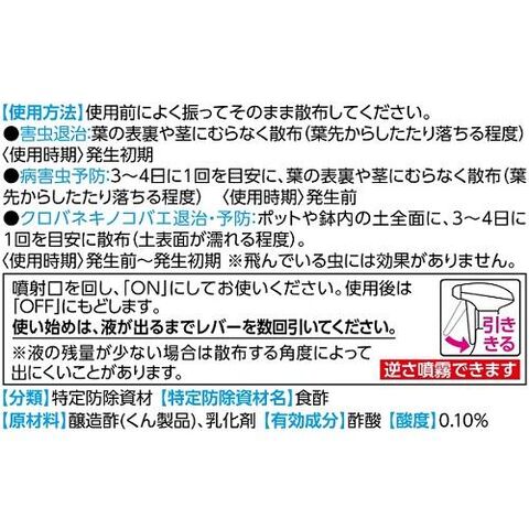 酢独特のニオイを抑えた処方で、ツンとしないので室内でも使えます。