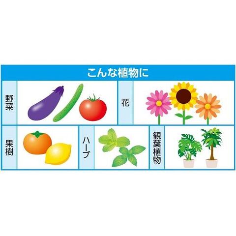 食品成分100%だから、いろいろな植物に使え、安全な野菜を育てたい方やお子様やペットのいるご家庭、化学系農薬に抵抗のある方にもおすすめです。
