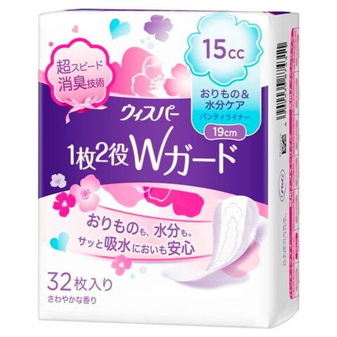 P&GJapan ウィスパー1枚2役Wガード おりもの&水分ケア パンティライナー 15cc 32枚 WPWガ-ドオリモノスイ15CC32 【返品種別A】