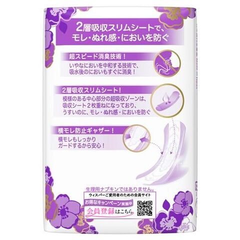 ◆ウィスパーうすさら安心なら、ぬれてもスリムシートで、モレ・ぬれ感・においを防ぎます。
