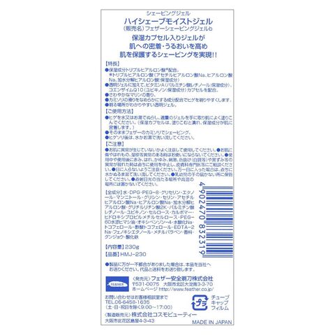 フェザー安全剃刀 ハイシェーブモイストジェル 230g Hモイストジエル230G 【返品種別A】