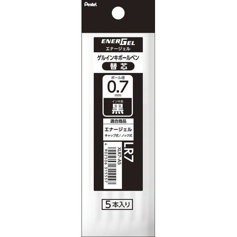 ぺんてる ゲルインキボールペン エナージェル用 替芯 0.7mm 5本パック(黒) Pentel XLR7-A5 【返品種別A】