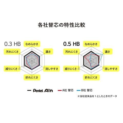 「Pentel Ain」は、従来品よりもなめらかさが向上しています。