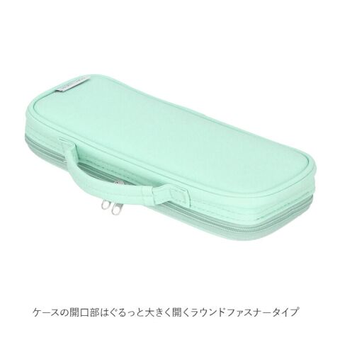 ケースの開口部はぐるっと大きく開くラウンドファスナータイプ。収納した文房具がひと目で見渡せて、取り出しもラクチン。