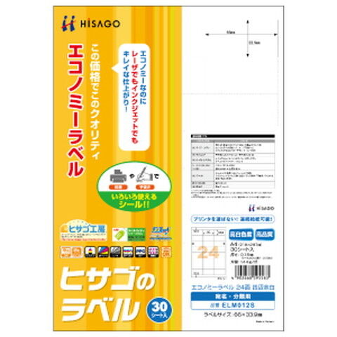 ヒサゴ エコノミーラベル[A4/24面 四辺余白/30シート入] HiSAGO ELM012S 【返品種別A】