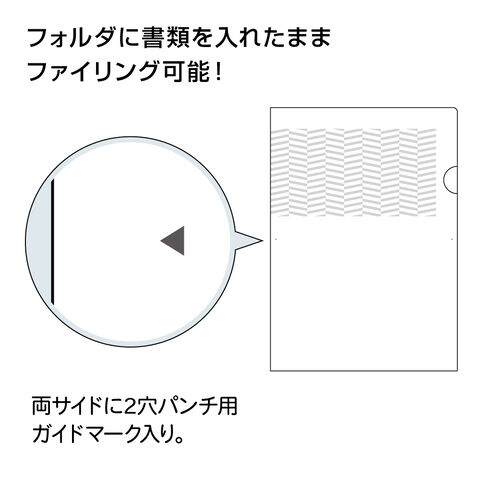 ◆ファイリングに便利な2穴パンチ用ガイドマークが両サイドに入っています。
