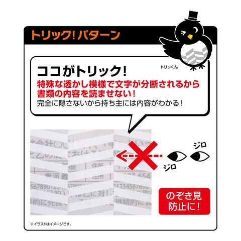 特殊な透かし模様で文字が分断されるから、書類の内容を読ませない!
