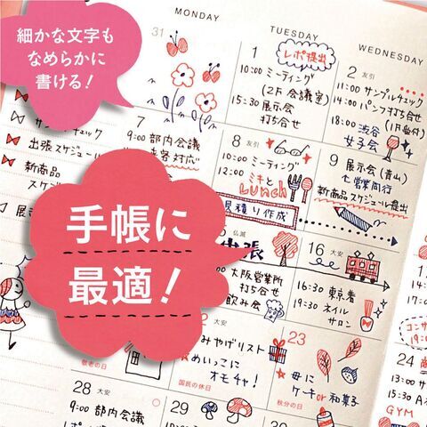 ・なめらかな書き味のジェットストリームインク:ボールペンには、「クセになる、なめらかな書き味。」のジェットストリームを採用。