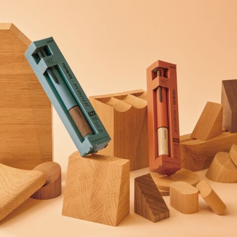 商品のパッケージには、古紙を再生利用した紙製パッケージを採用しています。商品の本体と色を合わせたデザインが印象的で、大切な方へのギフトとしてもお使いいただけます。