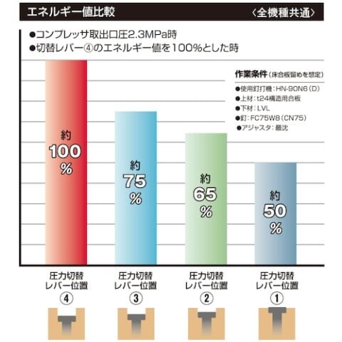 - 使用ホース:マックス スーパーエアホース 内径5mm以上・長さ30m以内