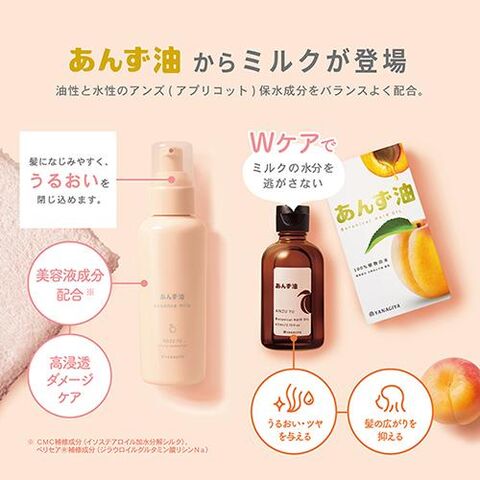 ◆うるおって軽やか、あんず由来のヘアミルク。インナードライ、傷んだ髪に。