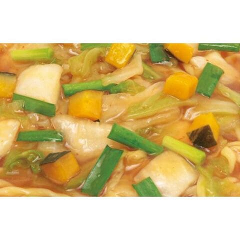 ■原材料名:めん(小麦粉(国内製造)、食塩、大豆食物繊維)、スープ(糖類、しょうゆ、動物油脂、食塩、ポークエキス、香辛料、ガーリックエキス、たん白加水分解物、オイスターエキス、鰹エキス、オニオンパウダー、植物油脂)、かやく(キャベツ、カボチャ、白菜、ニラ)/加工でん粉、調味料(アミノ酸等)、増粘剤(増粘多糖類、加工でん粉)、乳化剤、酒精、カラメル色素、かんすい、微粒二酸化ケイ素、酸化防止剤(ビタミンE)、香料、クチナシ色素、(一部に小麦・大豆・豚肉・ゼラチンを含む)