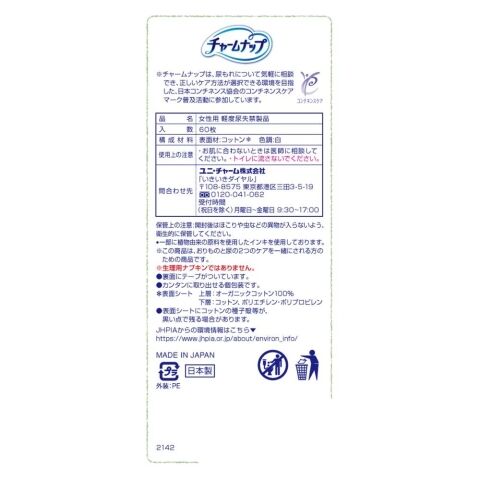 ユニ・チャーム チャームナップ 吸水さらフィオーガニックコットンロングパンティライナー 60枚 CNコツトンPL60 【返品種別A】