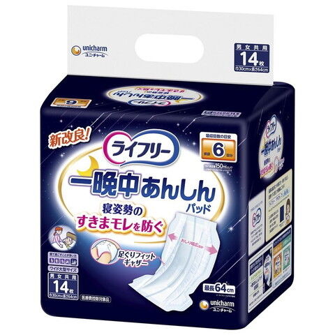 ユニ・チャーム ライフリー 一晩中あんしん尿とりパッド 14枚 ライフリヒトバンニヨウトリPS14 【返品種別B】