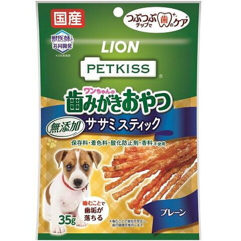 ライオン PETKISS ワンちゃんの歯みがきおやつ 無添加ササミスティック プレーン 35g PKハミガキオヤツムテンカSP35G 【返品種別B】