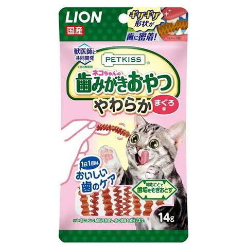ライオン PETKISS ネコちゃんの歯みがきおやつ やわらか まぐろ味 14g PKネコハミガキオヤツヤワM 14G 【返品種別B】