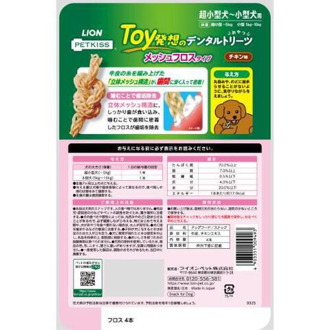 ライオン PETKISS Toy発想のデンタルトリーツ メッシュフロスタイプ 超小型犬~小型犬用 チキン味 4本 DTメツシユフロスコガタチキン4ホン 【返品種別B】