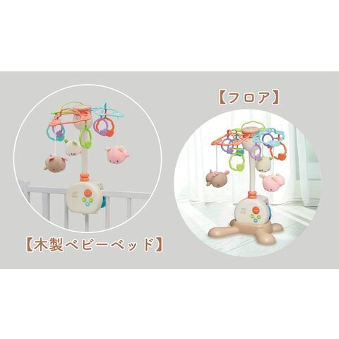 フロア・木製ベビーベッド・折り畳み式ベビーベッドで使える3WAYメリー!