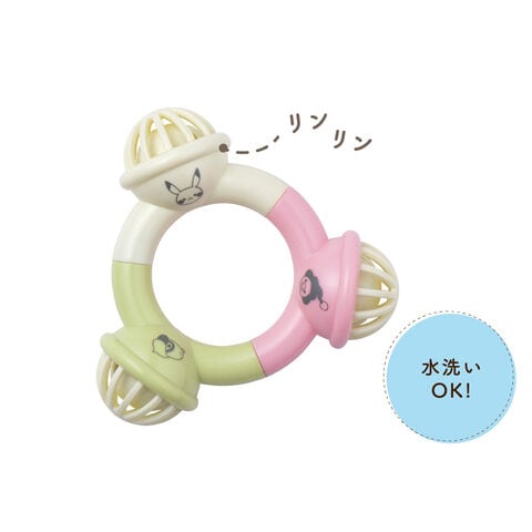 振るとリンリン音がする、やさしい音色のガラガラ。