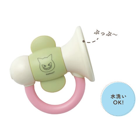 クルクルまわして指遊びもできるラッパのかたちのホイッスル。
