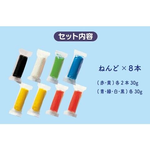 ねんど×8(赤・黄×各2本 30g/青・緑・白・黒×1 各30g)