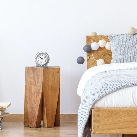夜も見易い! 文字板全面発光タイプの目覚まし時計です。
