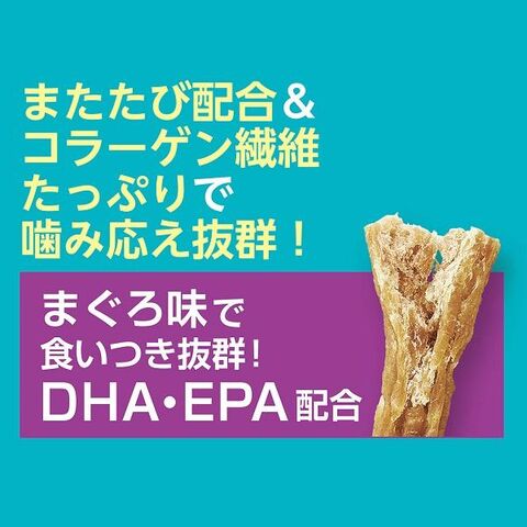 ◆またたび(虫えい果純末使用)入りのデンタルガムを噛むことで豚皮のコラーゲン繊維が歯垢をからめて落とします