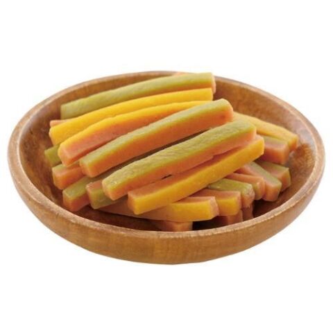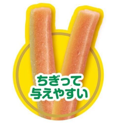 ■原材料:肉類(鶏・鶏ササミ)、卵類、小麦粉、さつまいも、パン粉、でんぷん類、還元水飴、植物性油脂、食塩、酵母エキス、難消化性デキストリン(水溶性食物繊維)、オリゴ糖、かぼちゃ、ほうれん草、乳酸菌(KH-2株(熱処理済)・ラクリス)、加工でんぷん、グリセリン、プロピレングリコール、pH調整剤、カゼインNa、リン酸塩(Na)、炭酸Ca、着色料(紅麹・クチナシ)