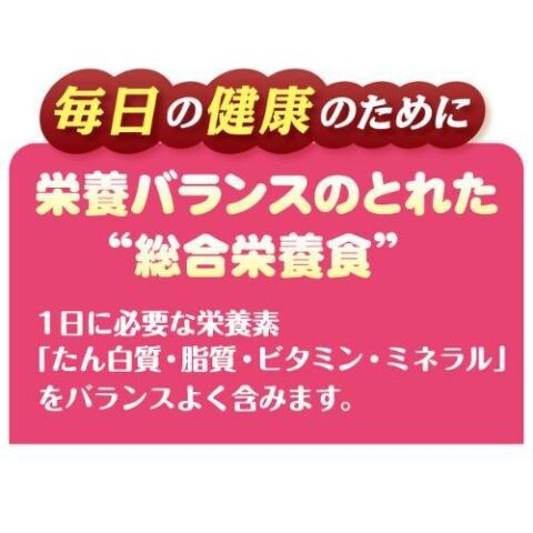 ◆1日に必要な栄養素「たん白質・脂質・ビタミン・ミネラル」をバランスよく含み、食物センイとオリゴ糖を配合した総合栄養食です。