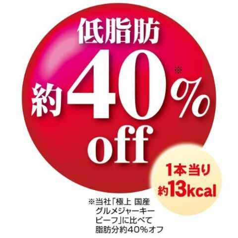 ◆脂肪分を約40%オフ(メーカー「極上国産グルメジャーキー ビーフ」比)してワンちゃんの健康をサポート。