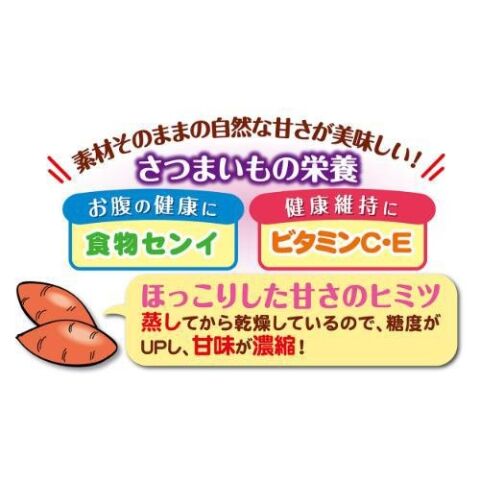 ◆食物センイやビタミンC・Eを含むさつまいもを蒸してから乾燥しているので、糖度がUPし甘みが濃縮されています。