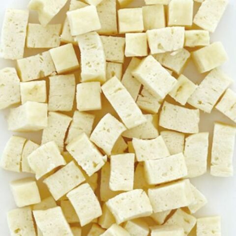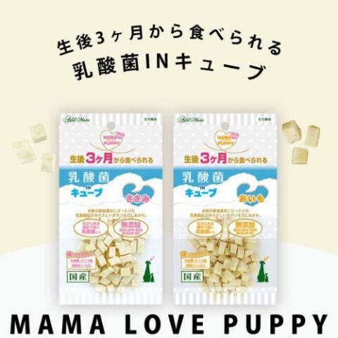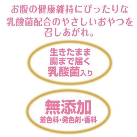 ◆お腹の健康維持に生きたまま腸まで届く乳酸菌、オリゴ糖、食物繊維配合のキューブ型おやつ。