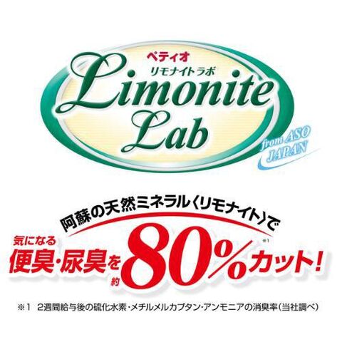 ◆阿蘇の天然ミネラル〈リモナイト〉で気になる便臭・尿臭を約80%カット(2週間給与後の硫化水素・メチルメルカプタン・アンモニアの消臭率(メーカー調べ)!