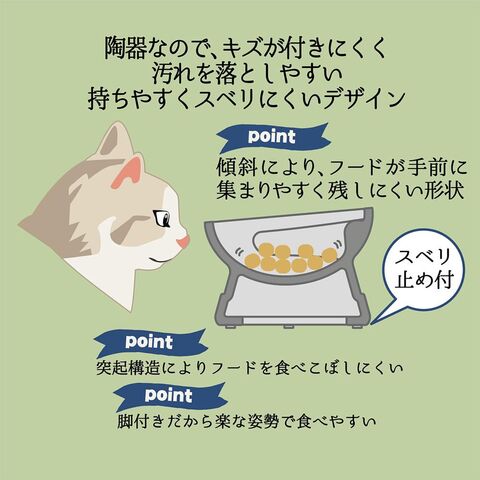 ◆突起形状によりフードを食べこぼしにくい傾斜により、フードが手前に集まりやすく残しにくい形状