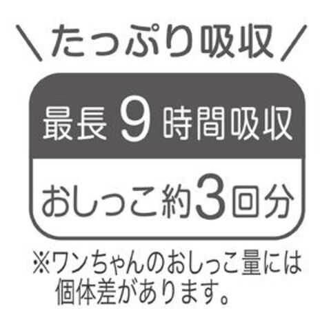 ◆たっぷり吸収! 最長9時間吸収(おしっこ約3回分)(※わんちゃんのオシッコの量には個体差があります)。