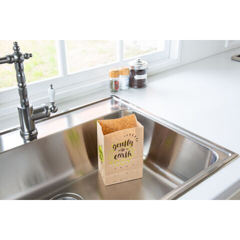 ◆三角コーナーいらずの自立型水切りゴミ袋。