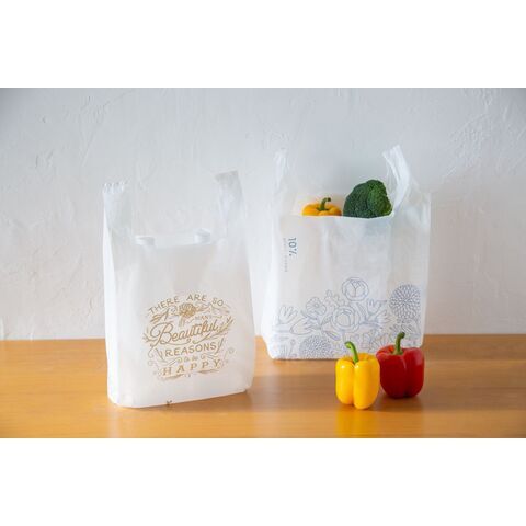 ◆柄入りのちょっとオシャレな持ち手付きのレジ袋。