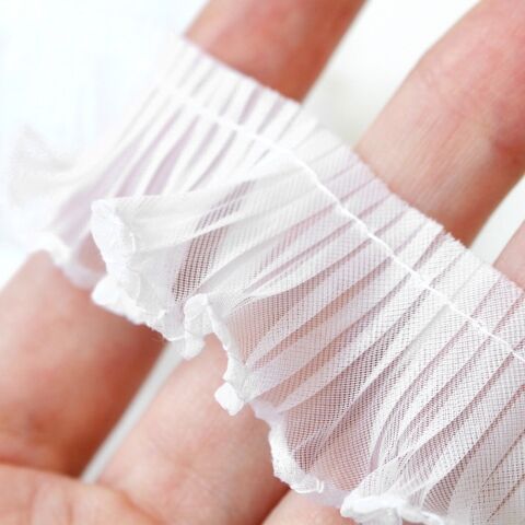 ◆ふんわりとした優しい色合いとプリーツがポイントのフリルレースです。