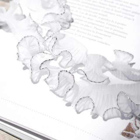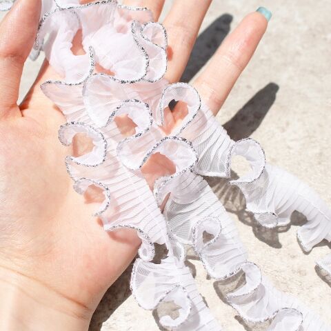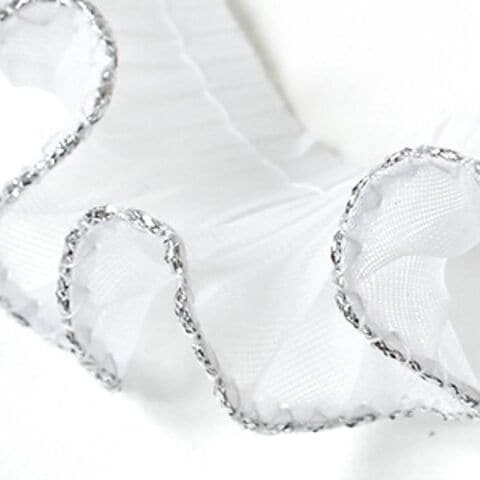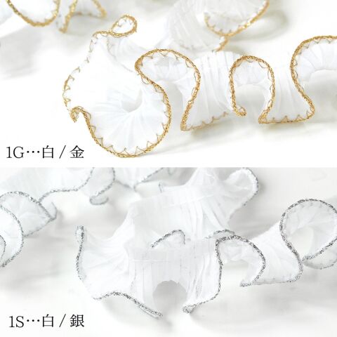 渡辺布帛工業 テトロンウェーブフリルレース ラメ縁 白×銀 WF-FL7700-25-1S 【返品種別B】