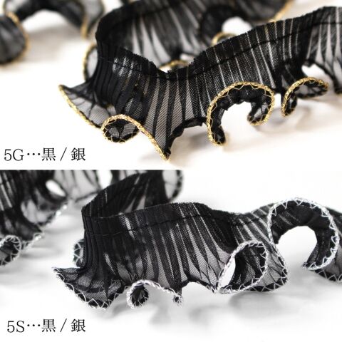 渡辺布帛工業 テトロンウェーブフリルレース ラメ縁 黒×銀 WF-FL7700-25-5S 【返品種別B】