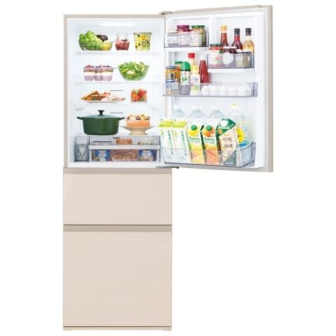 食品が積み重なりがちな冷凍室が3段のケースになっているので、小さな食品もスッキリ収納できます。