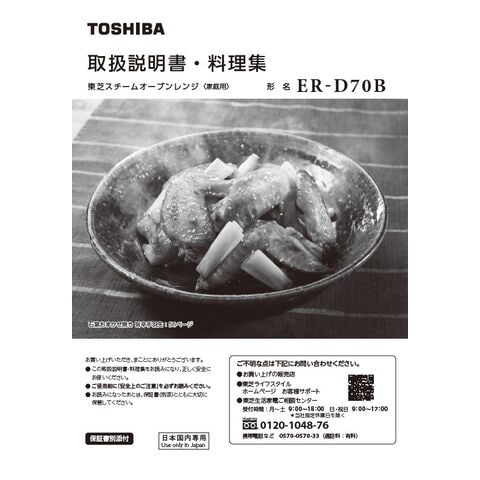 東芝 簡易スチームオーブンレンジ 26L ブラック TOSHIBA 石窯ドーム 角皿式スチームオーブンレンジ ER-D70B-K 【返品種別A】