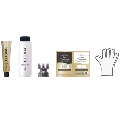 1剤(72g)、2剤(72mL)、ブラシ型ノズル、プレトリートメント(20mL)&アフタートリートメント((20g)、手袋、使用説明書