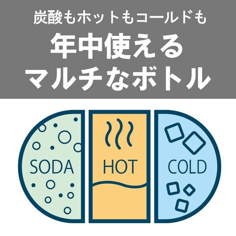 真夏の車中放置などで温度が著しく上昇するなど、万が一、ボトル内の圧力が異常に高まった際、「安全弁」が作動して自動でボトル内の炭酸ガスを逃がす構造を採用。 せんが飛んだり、中身が噴き出ることを防ぎます。