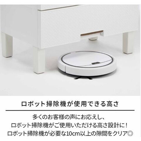 チェストを移動しなくても、ロボット掃除機・フローリングワイパーなどでチェスト下のスペースを簡単にお掃除できます。