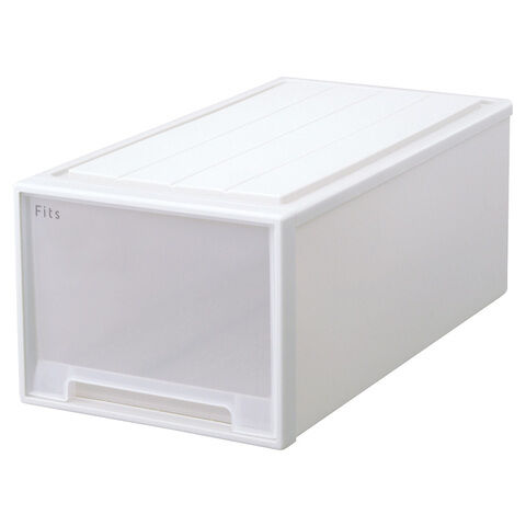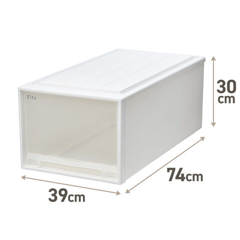 ※Fits fitsケース 衣類収納 洋服 整理整頓 衣替 積み重ね可能 奥行53cm 奥行74cm 衣類ケース スタッキング可能 引き出しケース 衣類 タオル 小物 収納 クローゼット 押し入れ リビング ベッド下 寝室 中身が見える ホワイト 白色