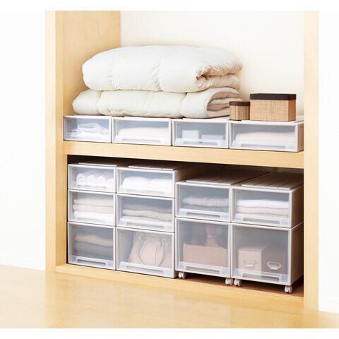 ◆押入れやクローゼットの収納に最適な「ホワイトクリア」の収納ケース