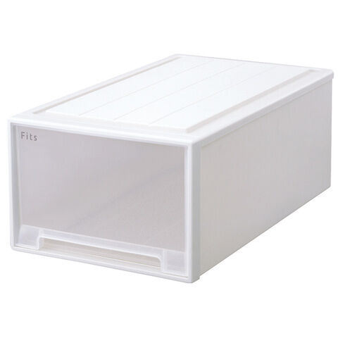 ※Fits fitsケース 衣類収納 洋服 整理整頓 衣替 積み重ね可能 奥行53cm 奥行74cm 衣類ケース スタッキング可能 引き出しケース 衣類 タオル 小物 収納 クローゼット 押し入れ リビング ベッド下 寝室 中身が見える ホワイト 白色