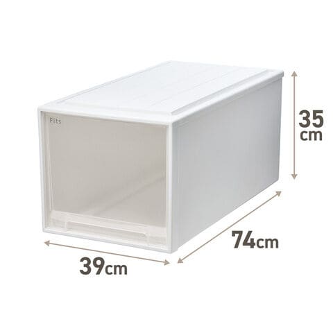 ※Fits fitsケース 衣類収納 洋服 整理整頓 衣替 積み重ね可能 奥行53cm 奥行74cm 衣類ケース スタッキング可能 引き出しケース 衣類 タオル 小物 収納 クローゼット 押し入れ リビング ベッド下 寝室 中身が見える ホワイト 白色