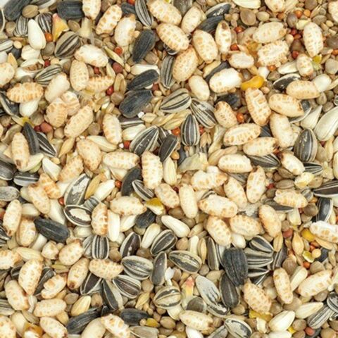 オカメインコ、ボタンインコ、小桜インコ等のために麻の実、ヒマワリ、サフラワー、トウモロコシなど大きめの種子を配合し、毎日の食事を飽きさせません。
